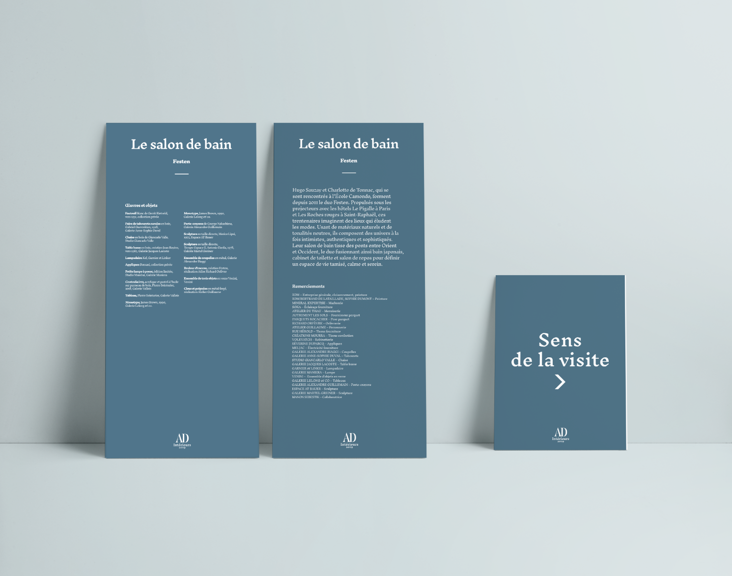 Développement de la communication d'AD Intérieurs, l’exposition organisée chaque année par le magazine AD. Une dizaine de talents, sélectionnés par la rédaction, mettent chacun en scène une pièce à vivre (salon, cuisine, chambre…) illustrant leur savoir-faire autant que leur style.